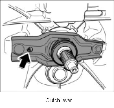 1. Remove clutch lever with release bearing. To do this, press the retaining spring -arrow- out of the opening in the clutch lever.