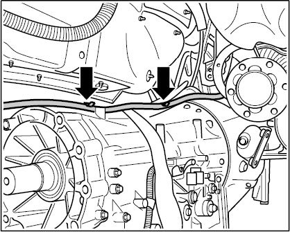 5. Raise transmission a few centimeters and notch transmission cross member B -A-.