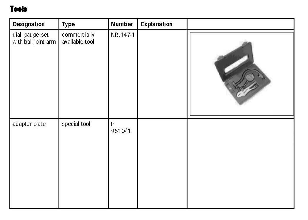 2. Fit the adapter dial gauge set with ball joint arm NR.147-1 at a suitable position on the wheel bearing housing. Fit the dial gauge with some preload.