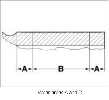 The central wear area -B- is the area with the highest degree of wear.