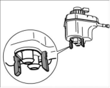 6. Bend both - lugs on the brake fluid reservoir carefully outward and pull off the container upwards.