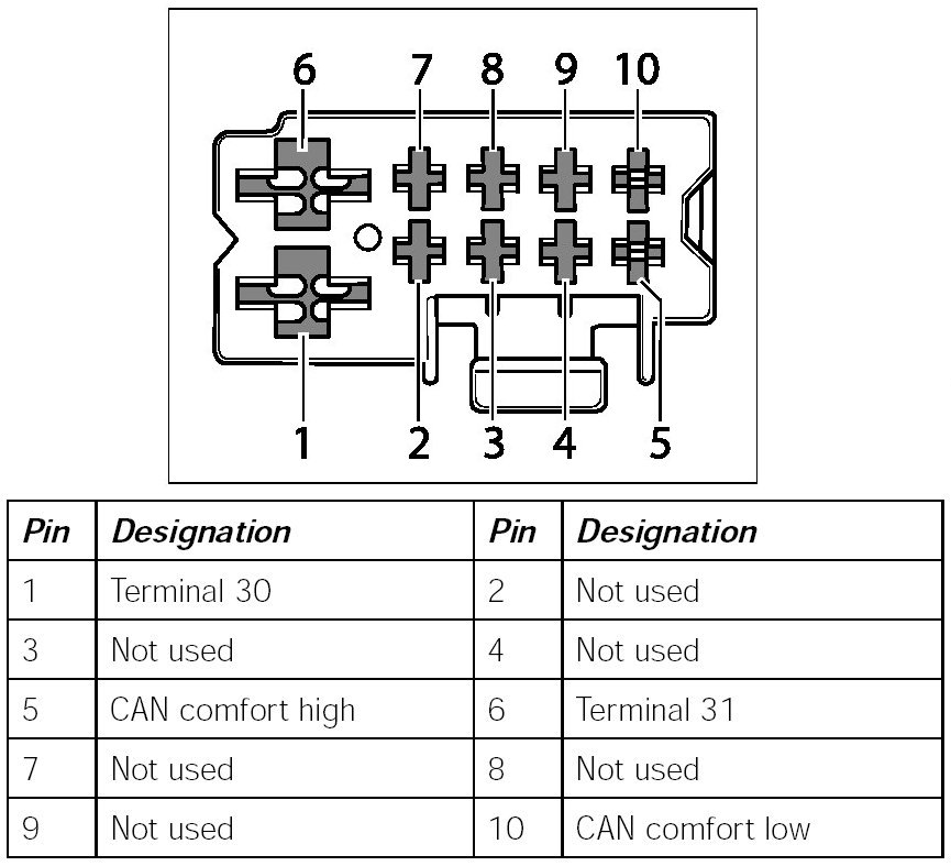 Plug A, wiring harness for Panorama roof system control unit (supply voltage and CAN)