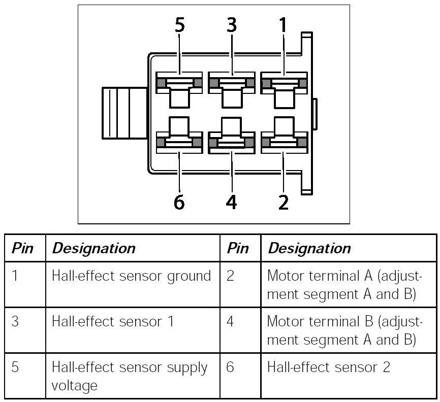 Plug B, Panorama roof system control unit wiring harness for motor adjustment, roof segments A and B (cover 1 and 2)