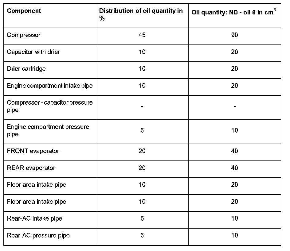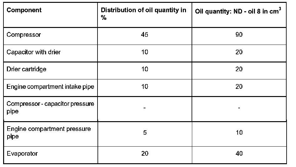 Basic vehicle: Distribution of the oil quantity in the individual air conditioning components