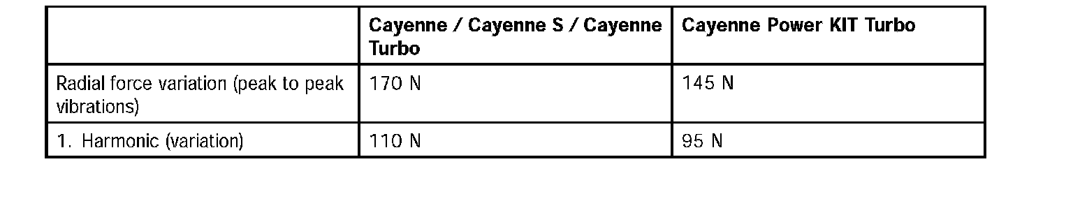 Note: A new tire must be fitted if the radial force variation cannot be reduced to the values listed in the table.