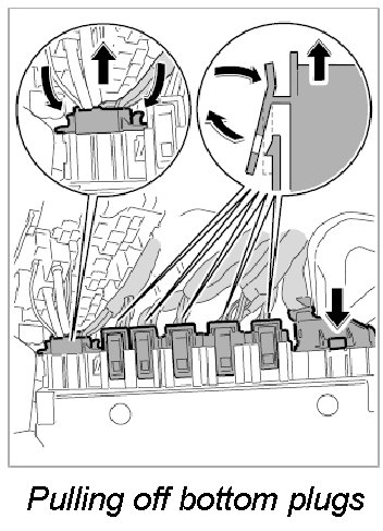 2. Push on bottom row of plugs until they are felt to engage.