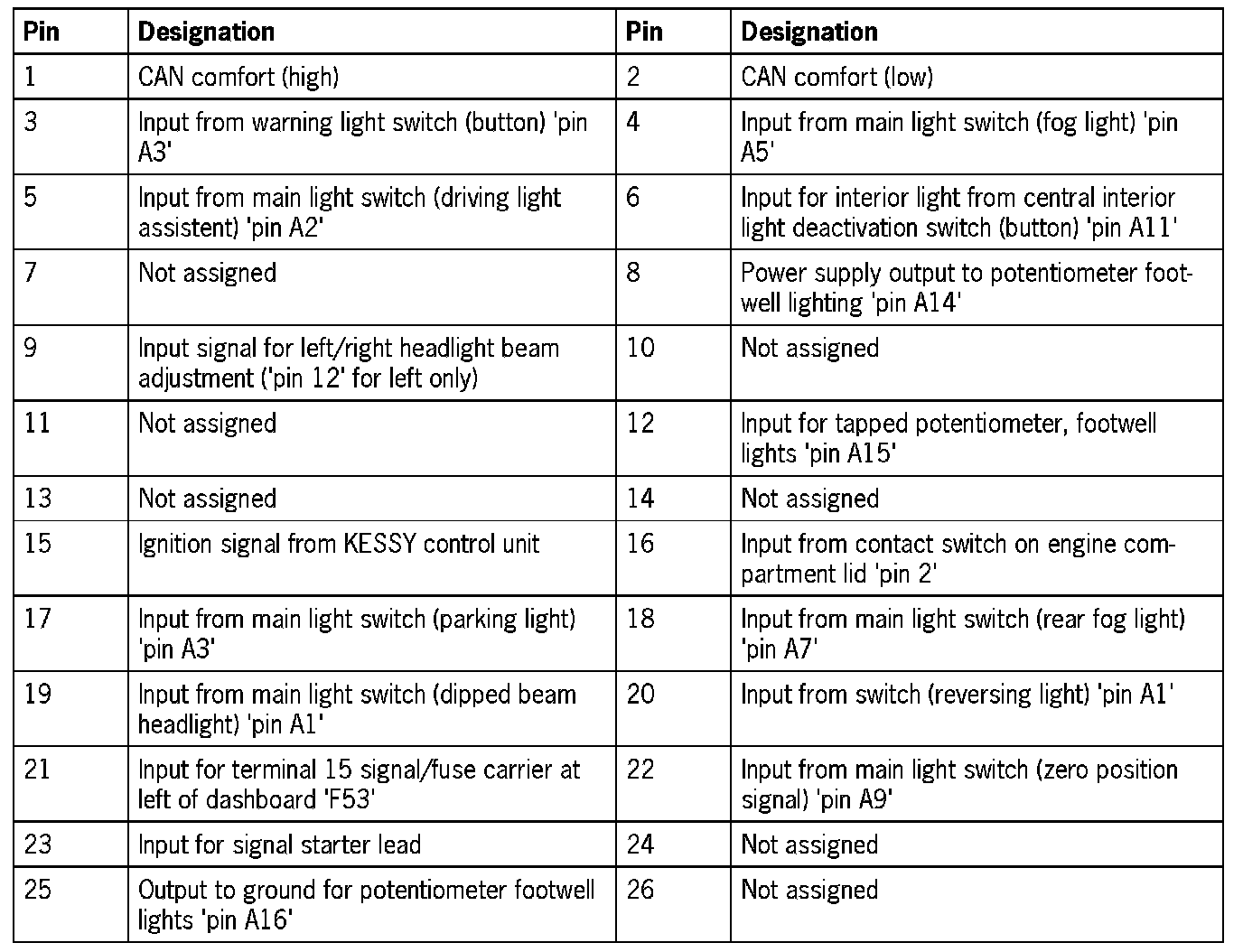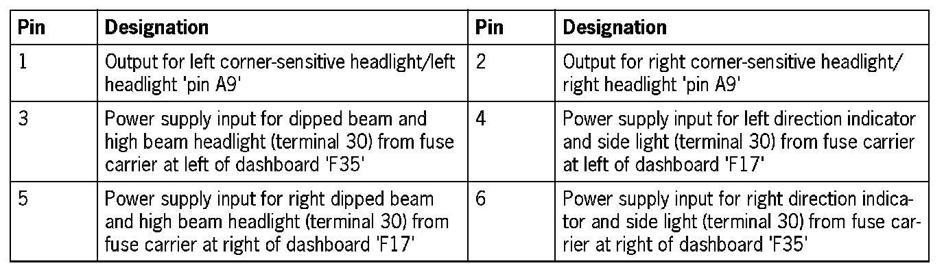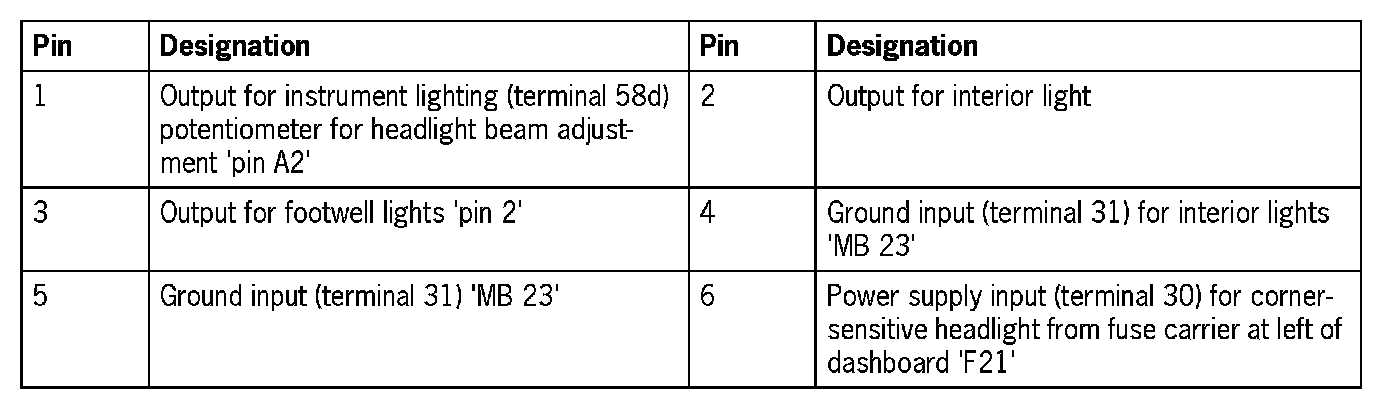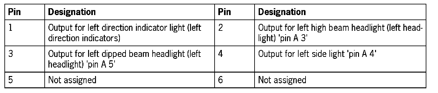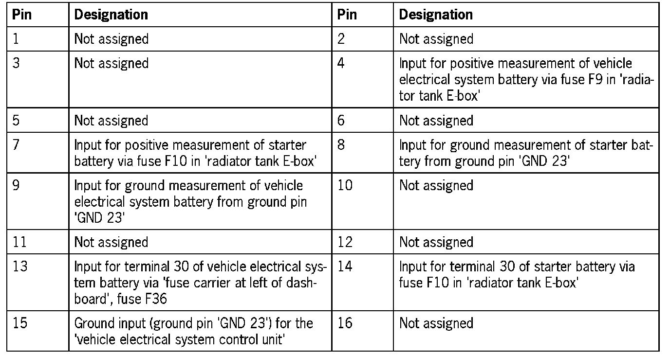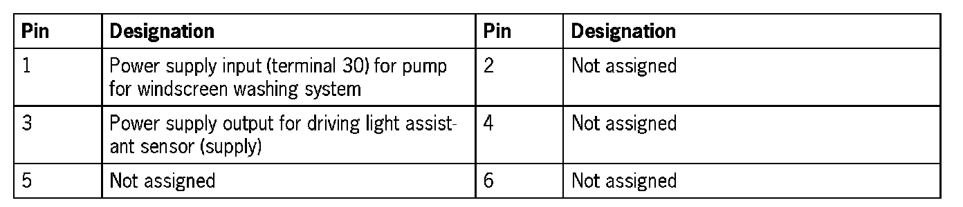 Connector assignmentNOTE: The plugs on the vehicle electrical system control module can only be pulled off and re-connected in a certain sequence.