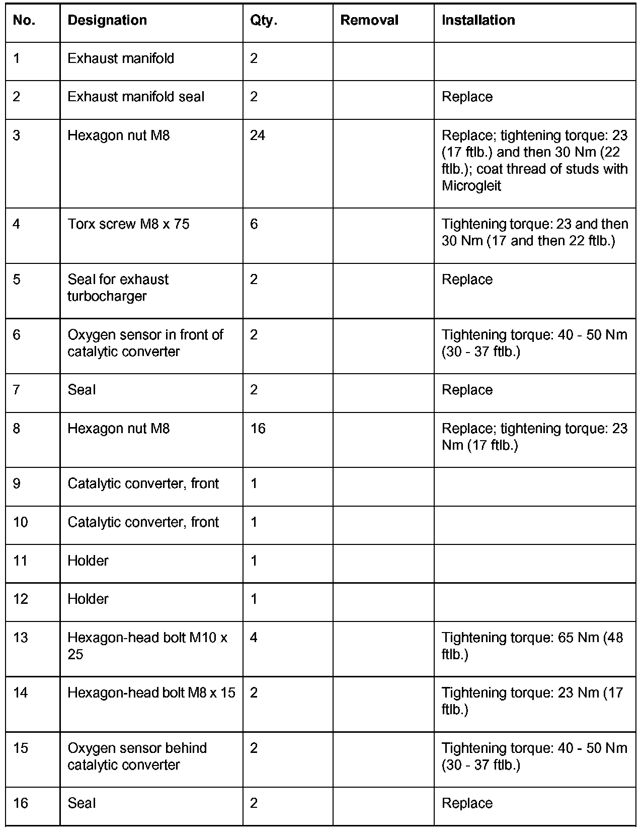 6. Undo five fastening nuts to the turbocharger.