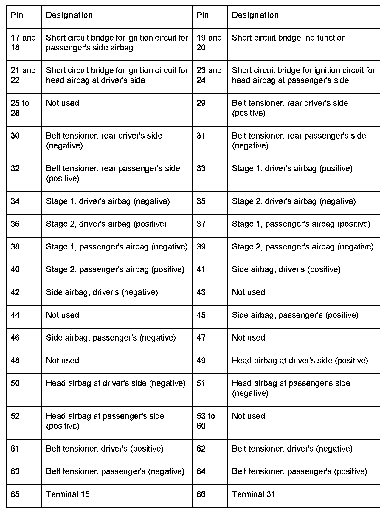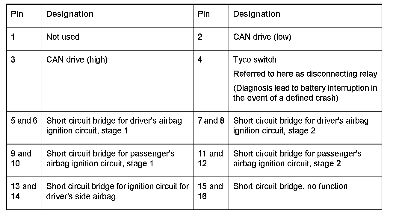 Connector Assignment, Airbag