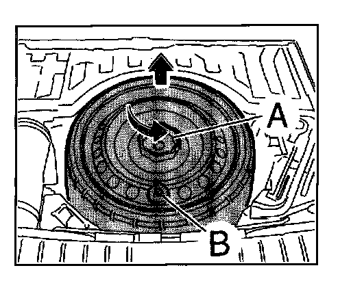 2. Unscrew bolt -B- and remove it together with the collapsible spare wheel.