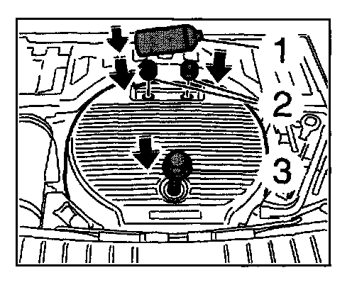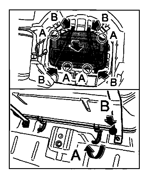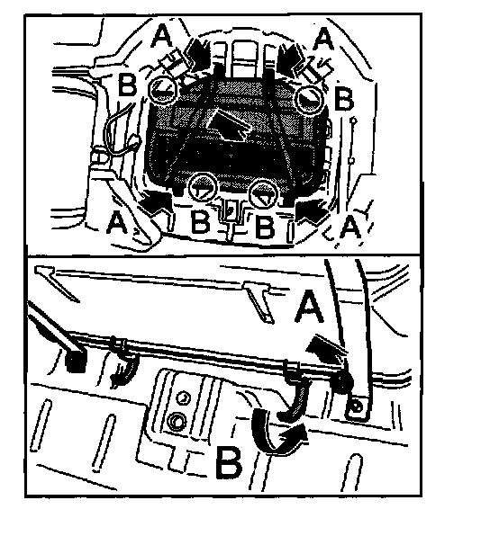 2. -B- Unclip the four fastening clips using a screwdriver.