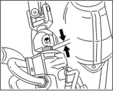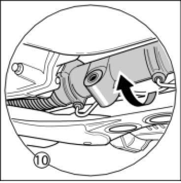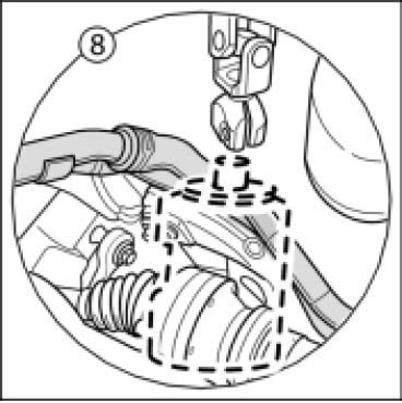 10. Turn steering gear -arrow- to the rear by approximately 90-100 degrees.