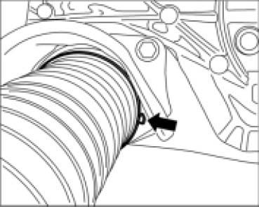 ^ If the joint boot is to be used again, before installing inspect for wear (cracks, slits) and check that sealing surfaces are clean.