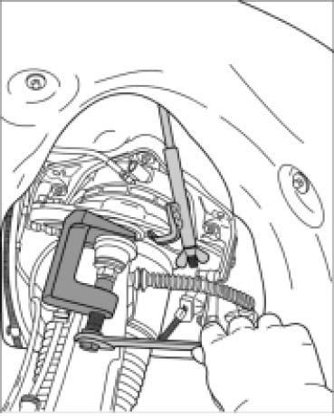 ^ Use an intermediate layer (hard rubber). Do not damage the brake cover plate.