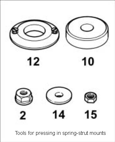 The pressure pieces are used as follows Arrangement of tools for pressing in spring-strut mounts.