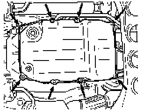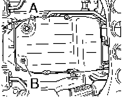 ^ Make sure that the seal has been positioned correctly on the bead of the oil pan edge.