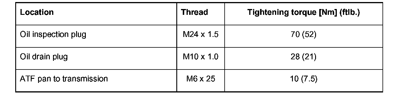 Tightening torque: 28 Nm (21 ft. lbs.)