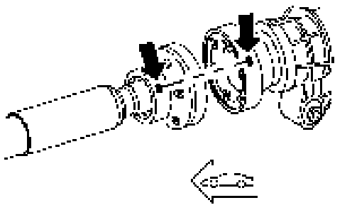 ^ The colour mark, match point, on the cardan shaft and on the rear final drive flange must be aligned. This will neutralize any residual imbalance of the components.
