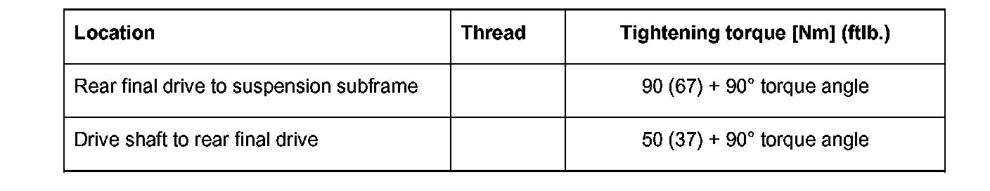 Tightening torque: 50 Nm (37 ft. lbs.) + 90° torque angle