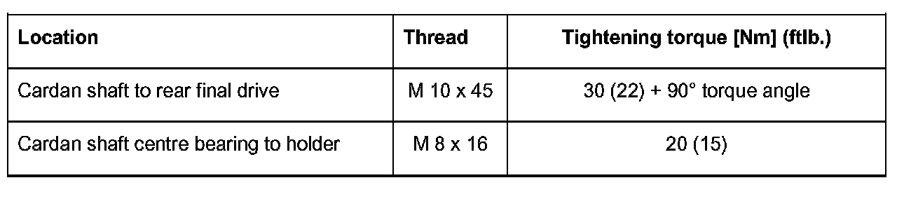 ^ Centre bearing must be installed without tension.