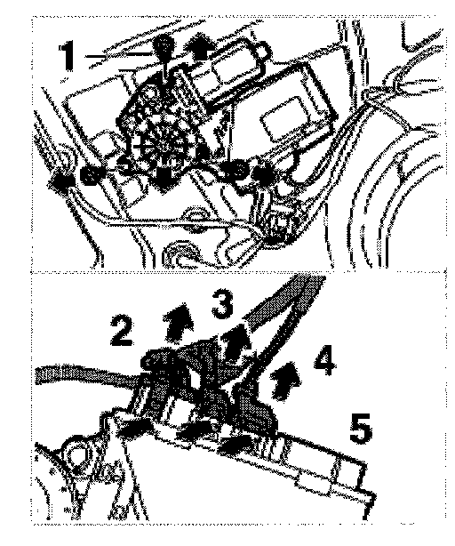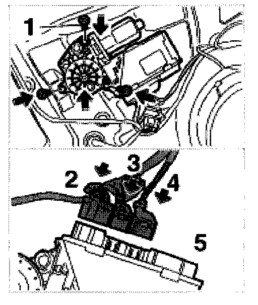 2. Attach connectors -2, 3, 4- to the power window motor control unit until they engage firmly.