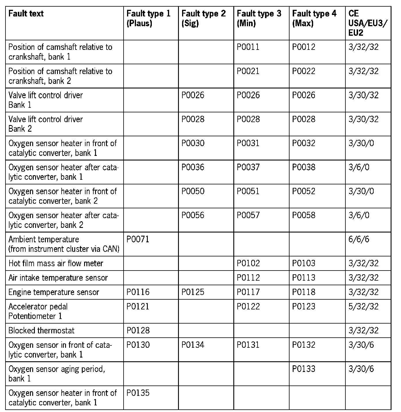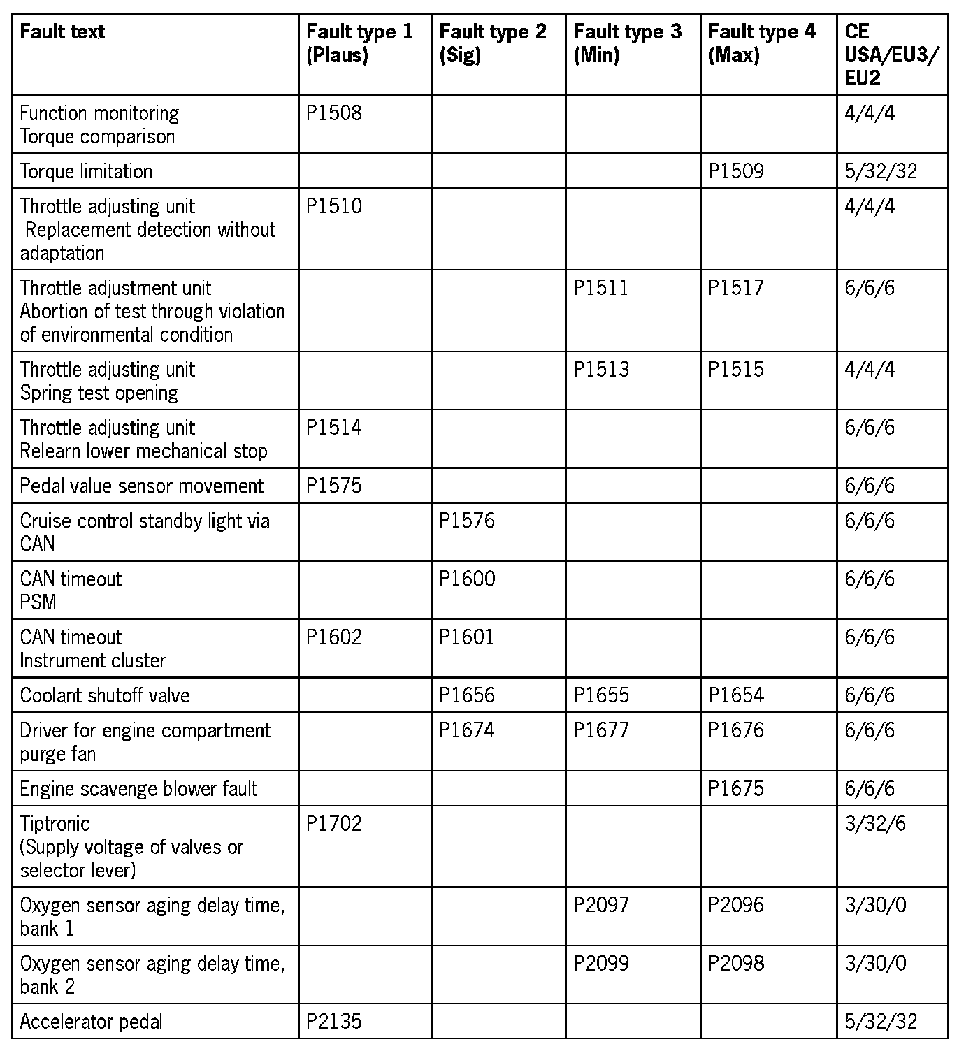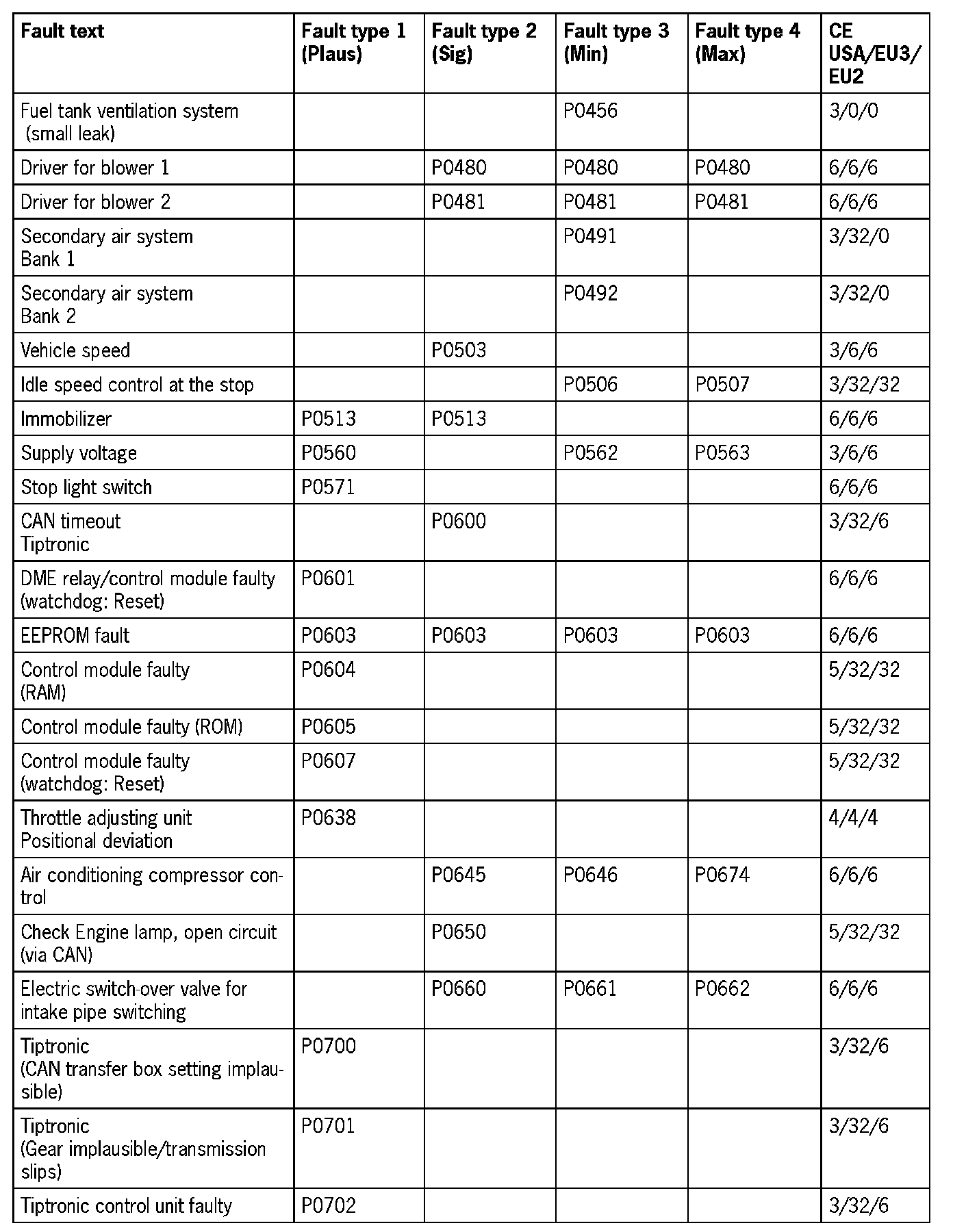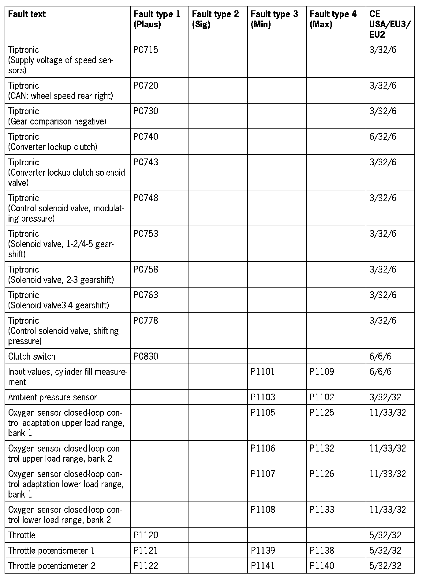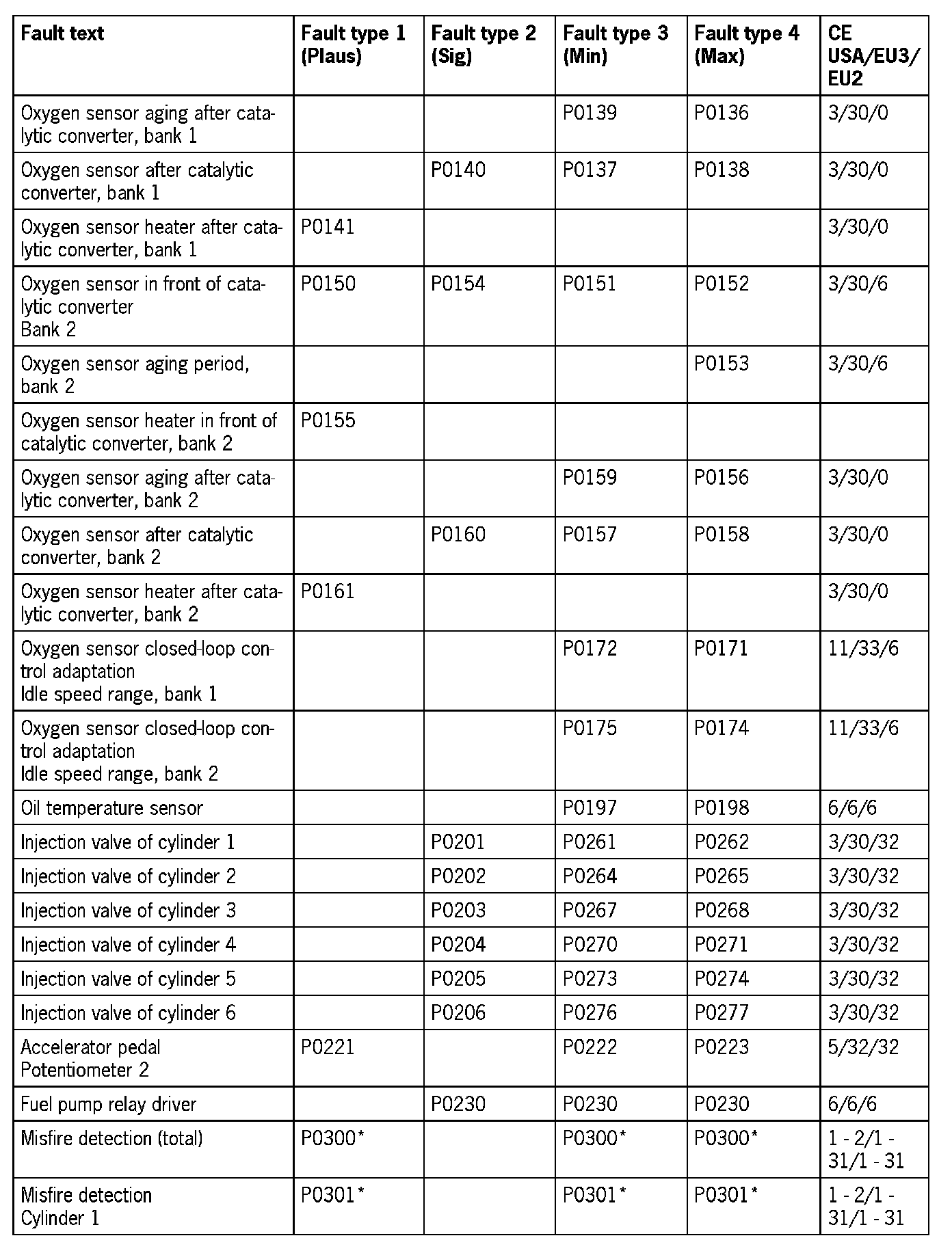 - The turbo versions for model year 2001 and as of model year 2002 have separate fault code tables which differ in some respects from this table.