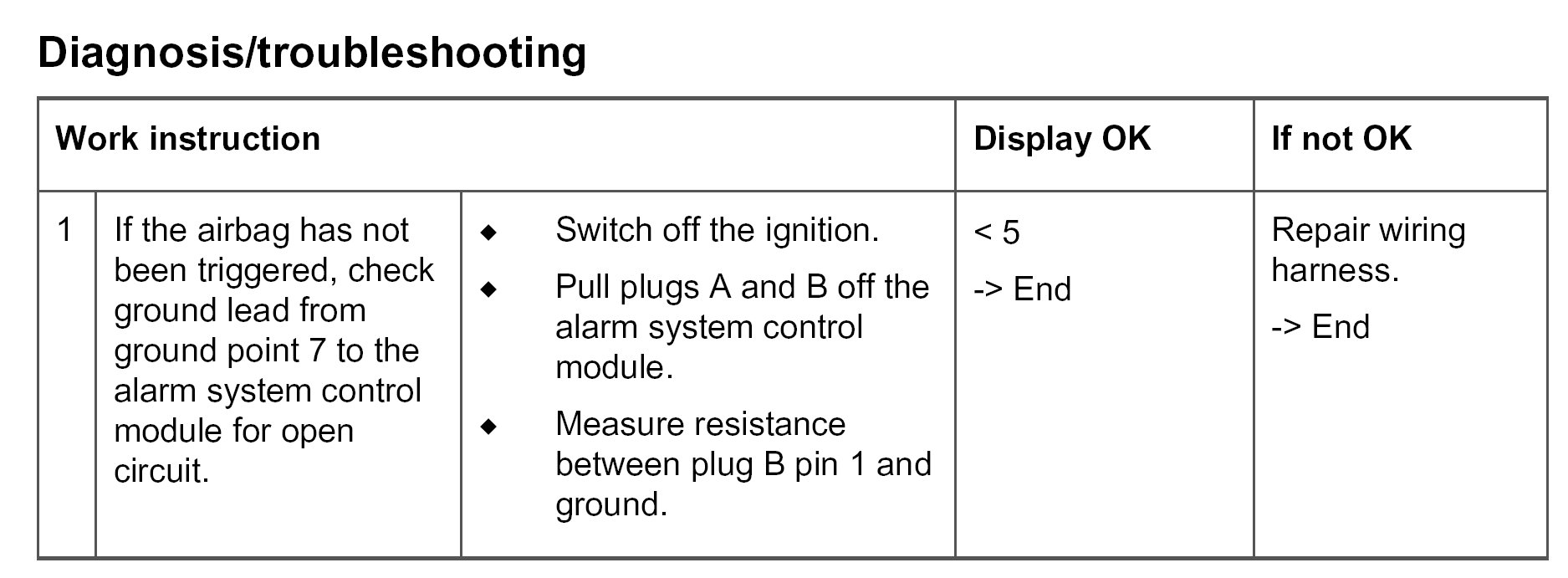- Open circuit in ground lead from ground point 7 to control module