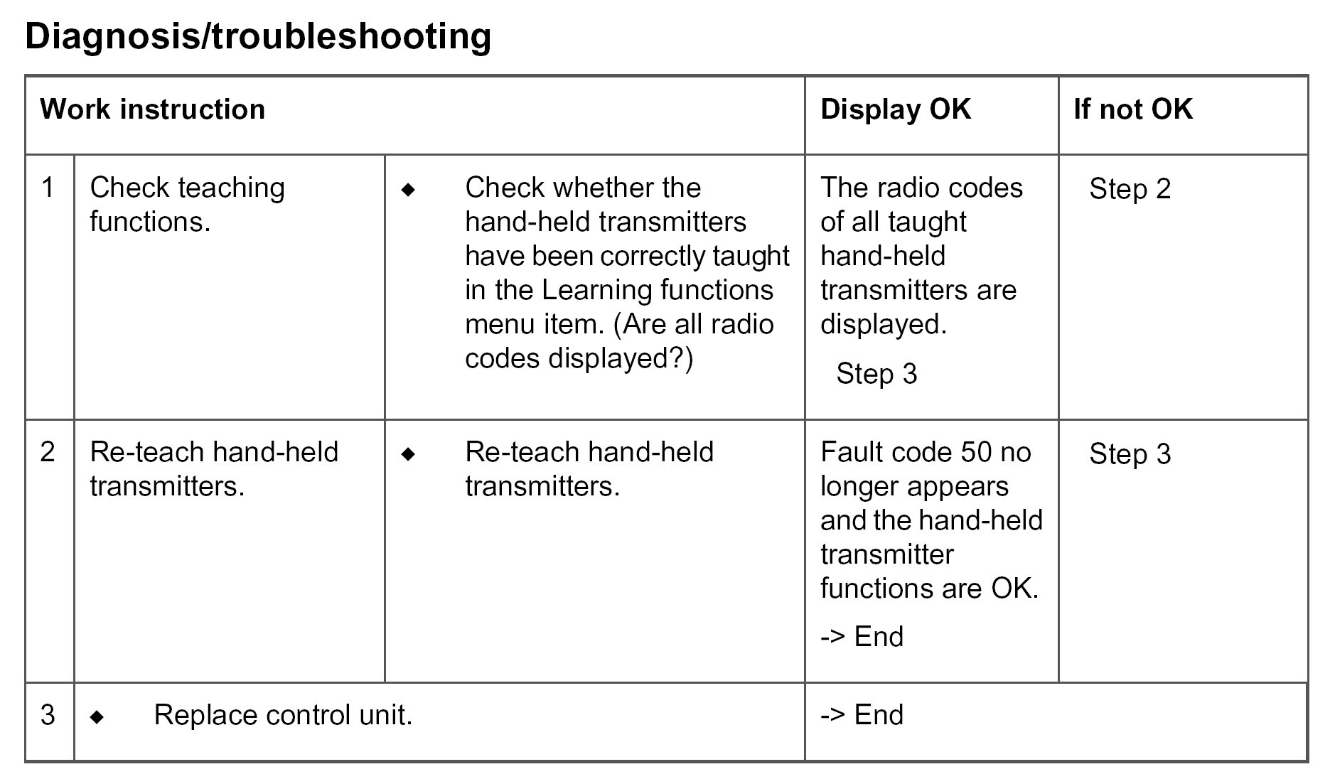 Diagnosis/troubleshooting