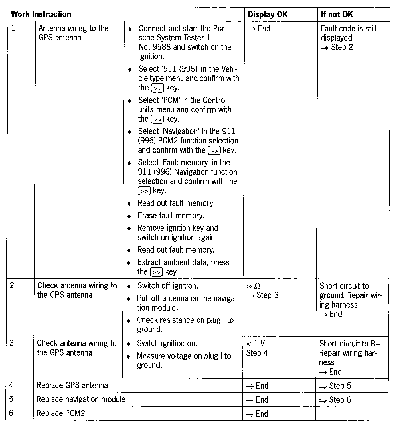 - Short circuit in the antenna wiring from GPS antenna on PCM2 to ground or B+