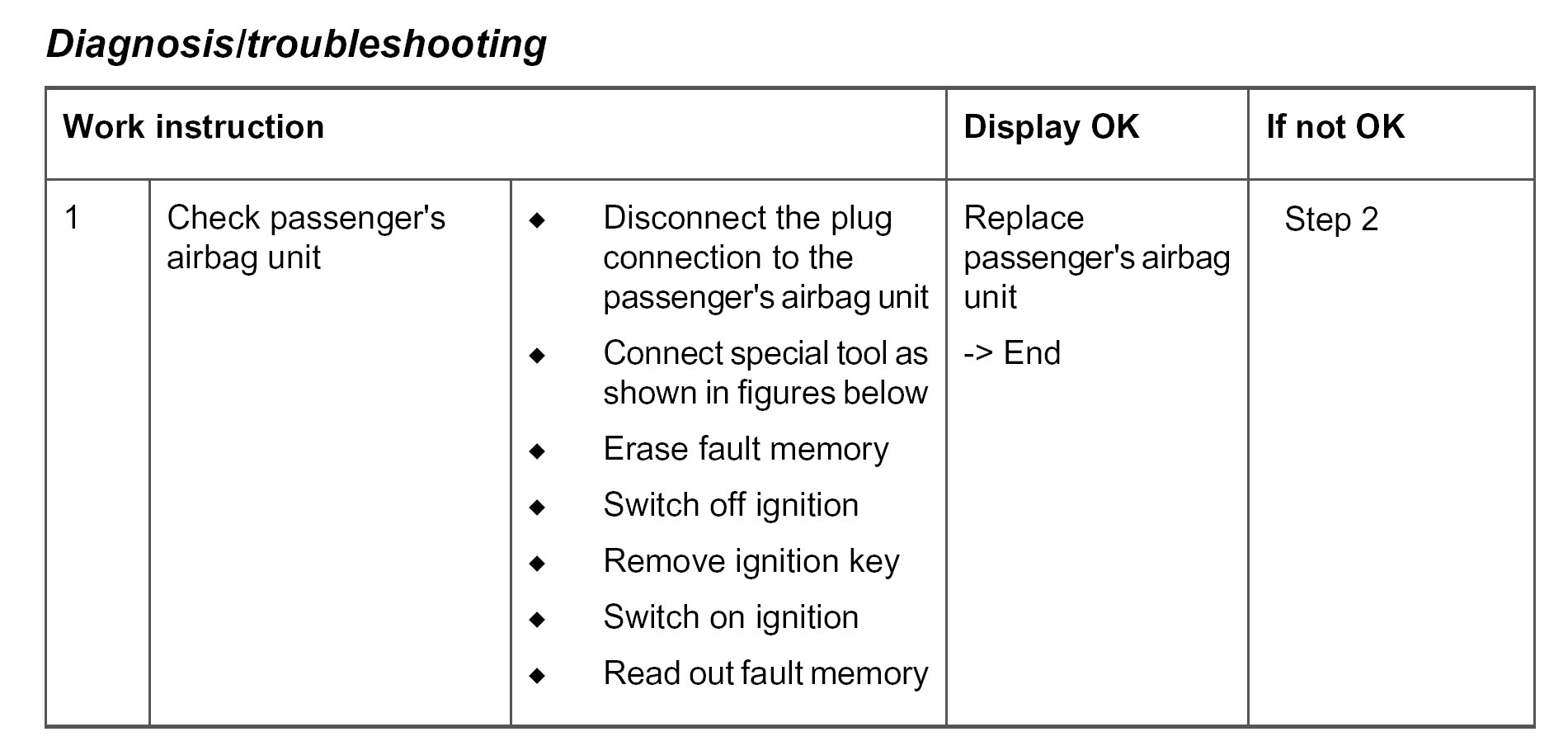Test tool 9516 instead of the passenger's airbag unit
