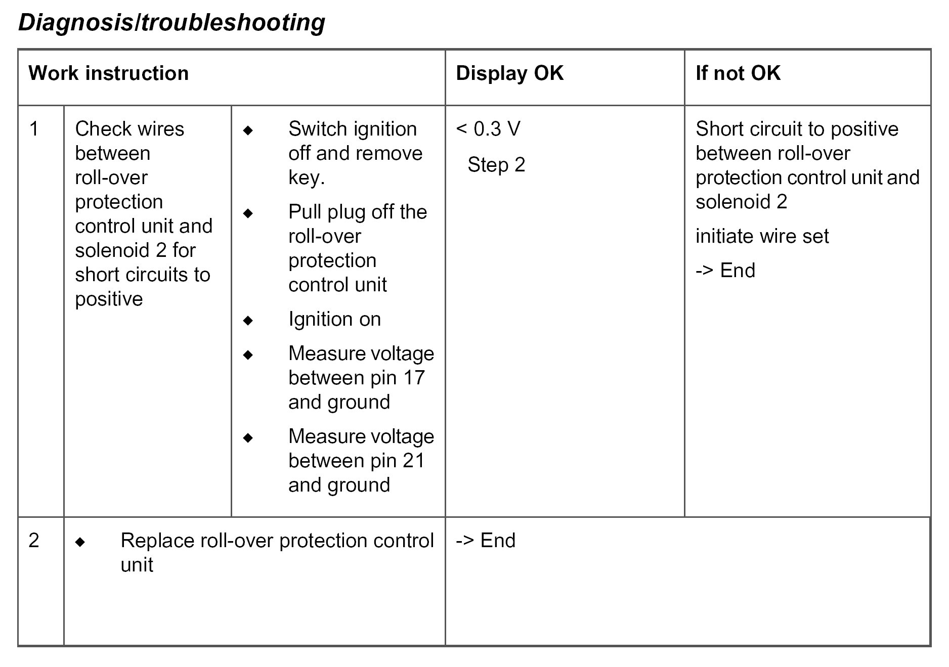 - Short circuit to positive between roll-over protection control unit and solenoid 2