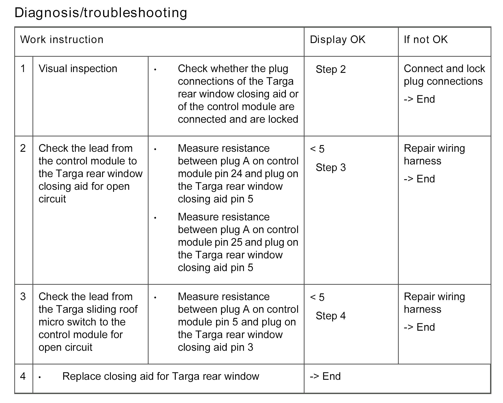 - The status of the three micro switches in the closing aid for the Targa rear window can be read out in the menu item Input signals under Closing aid switch I to III.