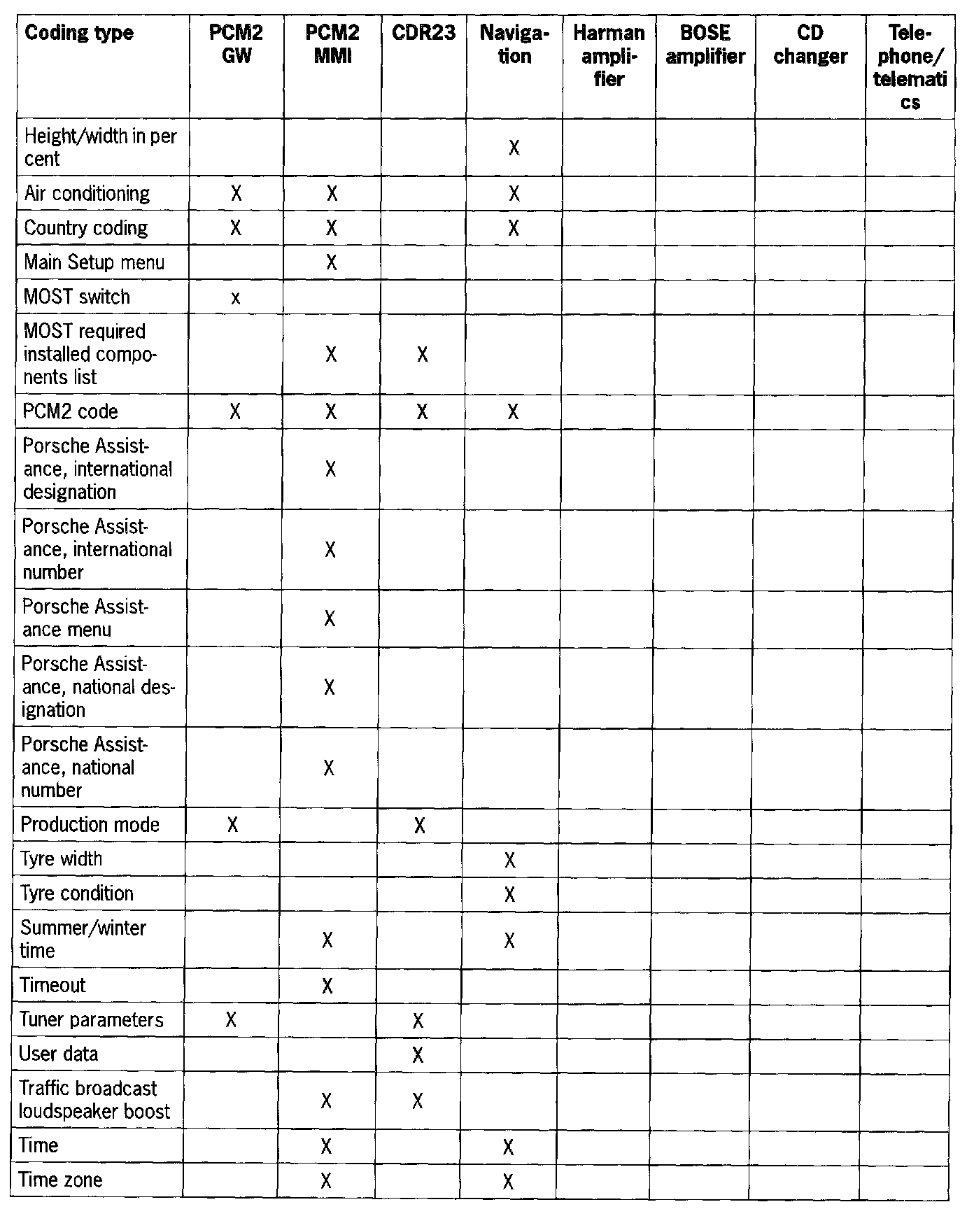 - When the PCM2 is replaced, the coding must be performed in accordance with the connected MOST control modules.