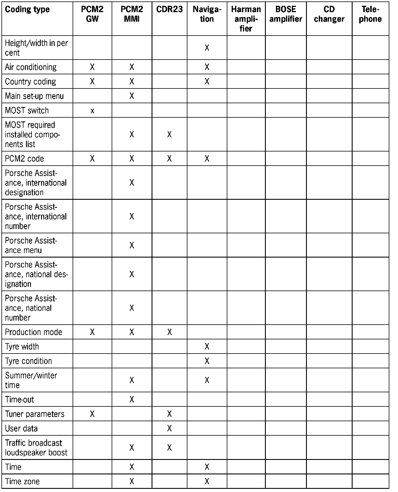 Coding Table