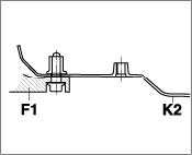 The combination - front-axle cross member with two fastening bores and (F2) and body with one fastening point (K1) - is not possible!