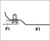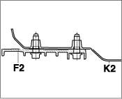 ^ Do not install front-axle cross members with one fastening screw (F1) in vehicles with two body mounting points (K2)!