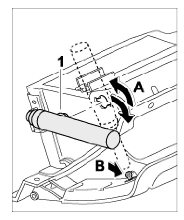 Insert the pneumatic shock absorber -1- and turn it 90 degree clockwise in the direction of arrow -A-. Insert the pneumatic shock absorber into the fastening tab towards the -direction of arrow B-.