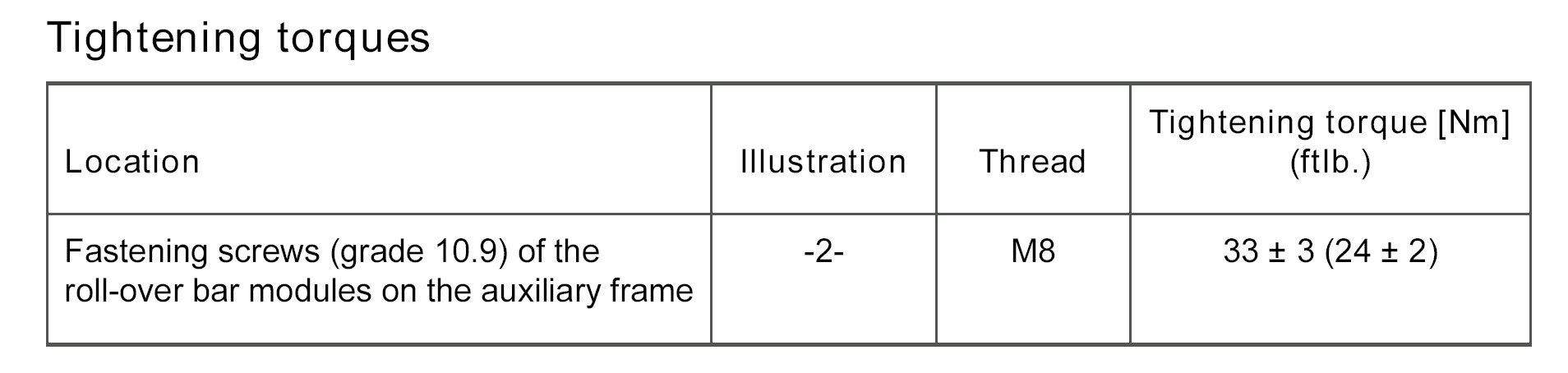 - The roll-over bar modules must be replaced in the event of visible damage or pressure marks.