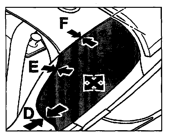 - Set the gap dimension -F- rear side section flap to frame trim panel for the roll-over protection system.