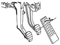 Perform measurement between the centre of the brake pedal plate and the accelerator.