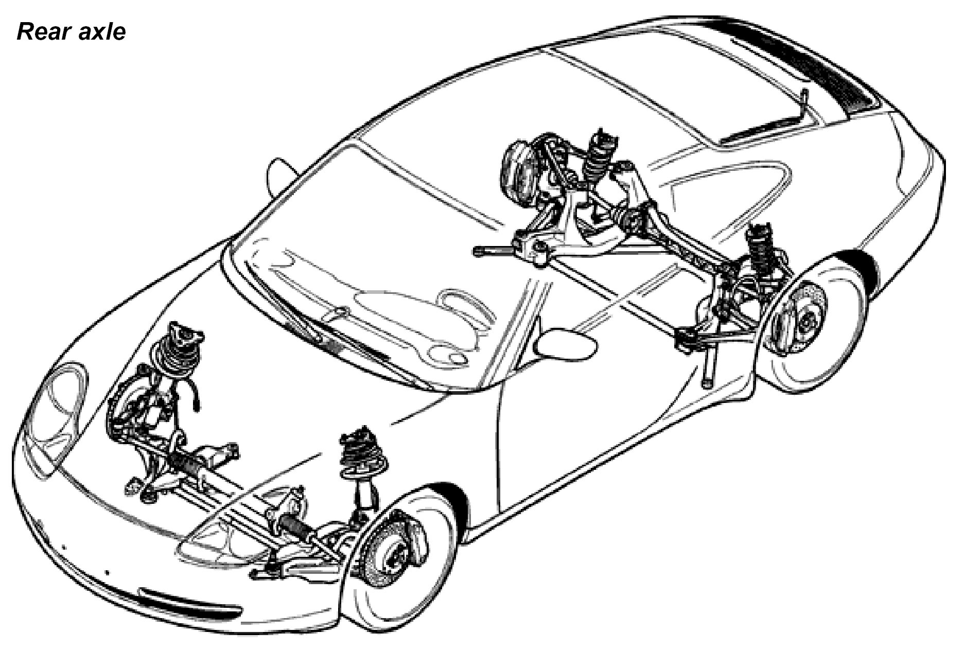 The multi-link rear axle used in the 911 Carrera (993) served as the basis for the further development in the new 911 Carrera (996). Important considerations here were to achieve further weight reduction while preserving the familiar good vehicle dynamic properties. The longer wheel base offered additional potential for improvements in driving comfort and handling.