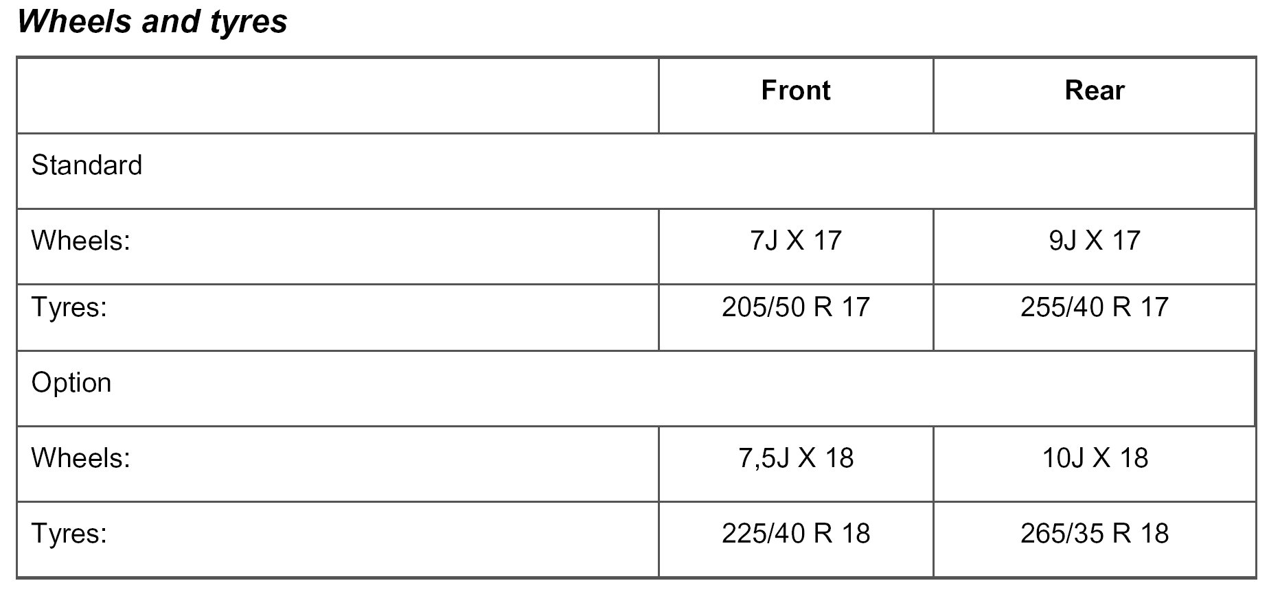 McPherson wheel suspension with offset spring. Twin-tube gas-filled shock absorbers in standard or sports version.