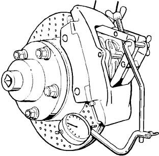 ^ Do not damage the brake hoses or brake lines during removal/installation of the brake caliper. The universal dial gauge holder can also be used to check the brake disc lateral runout.
