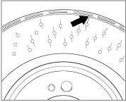 - Measure the brake disc thinnest point with a suitable micrometer screw, at one of the two smooth friction rim zones -arrows- (at the most worn friction rim area).
