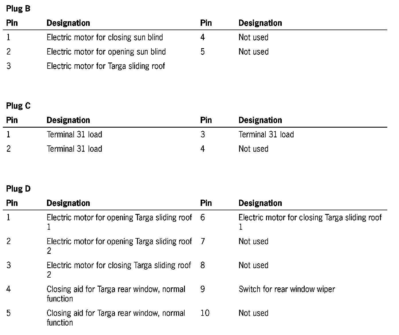 Connector Assignment, Control Module For Targa Roof (Part 1):