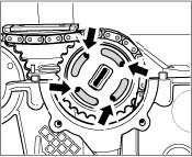 All four screws positioned on the chain sprocket, side 1-3