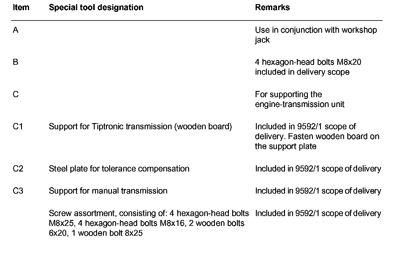 Tools, Removing and installing engine as from MY 02Special tools