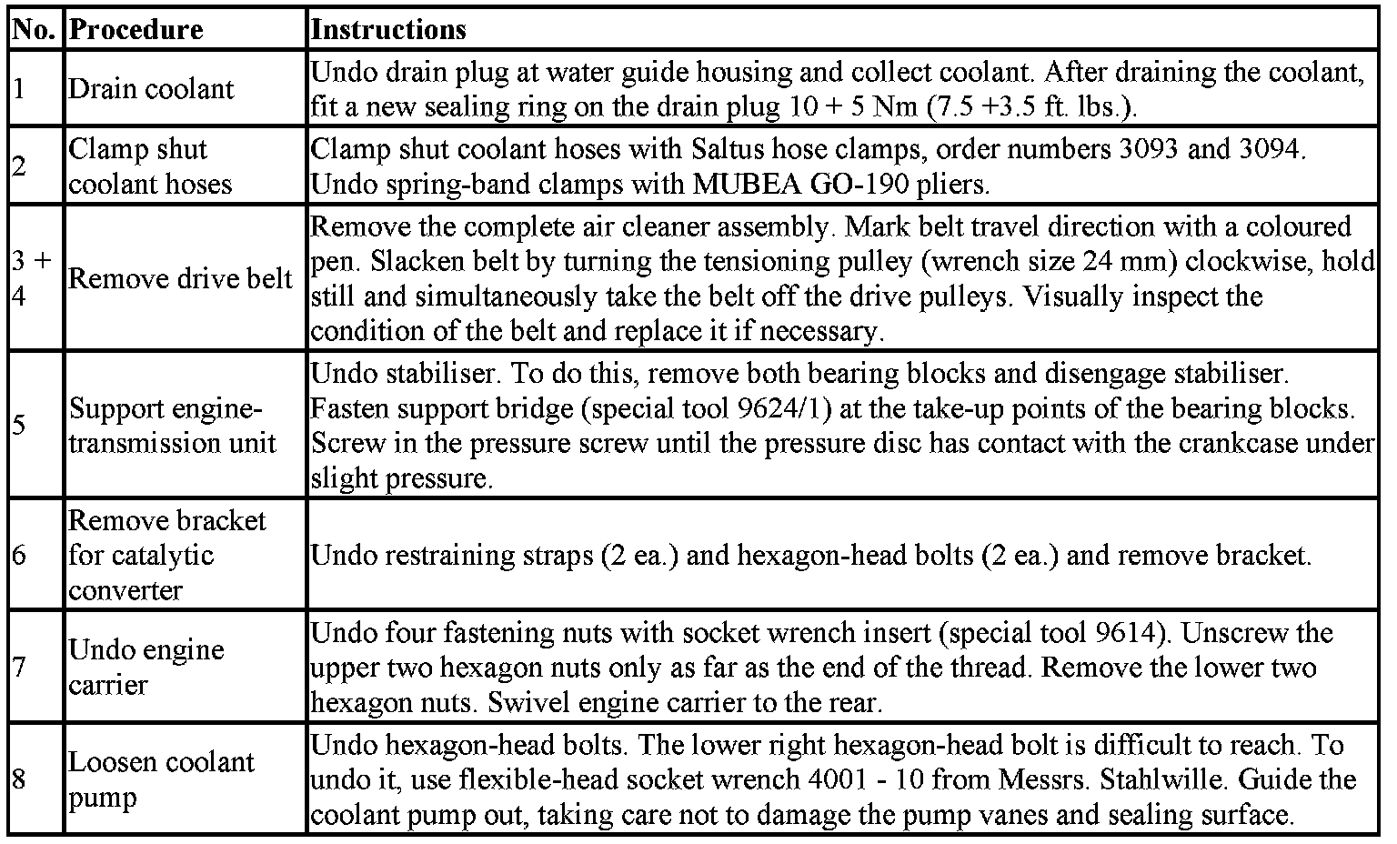 Removing and installing coolant pump (engine installed)