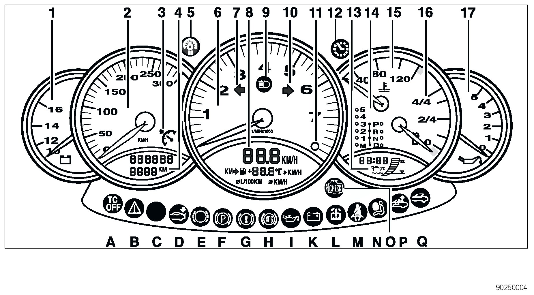 Only model with ABS 5.3 (Carrera 2): Lights up as a check when the ignition is switched on together with the rocker switch. During the journey, the warning light shows that the driving stability control is switched off. It also lights up if the Traction Control is faulty.