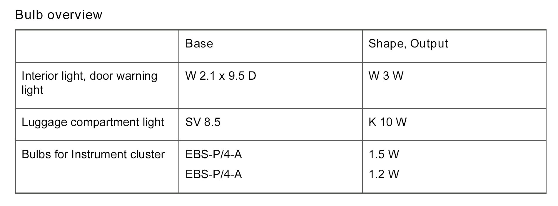 Only use bulbs which conform to the bulb overview. Bulbs with a higher output may cause damage to the bulb housing.